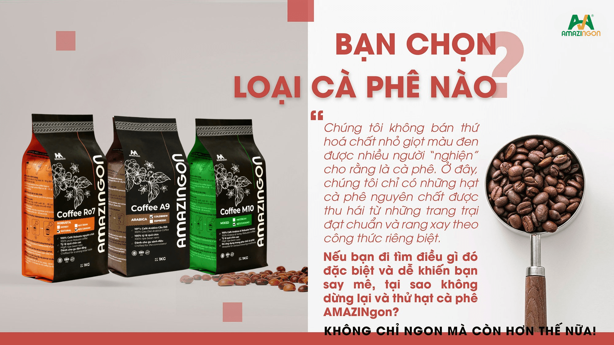 Ở đây, AMAZINgon chọn cách phát huy những điểm tốt nhất của từng loại cà phê để mang đến những khẩu vị phù hợp nhất cho khách hàng và phải luôn đảm bảo cam kết về: